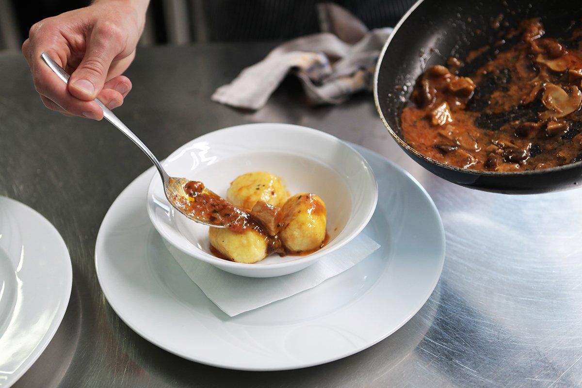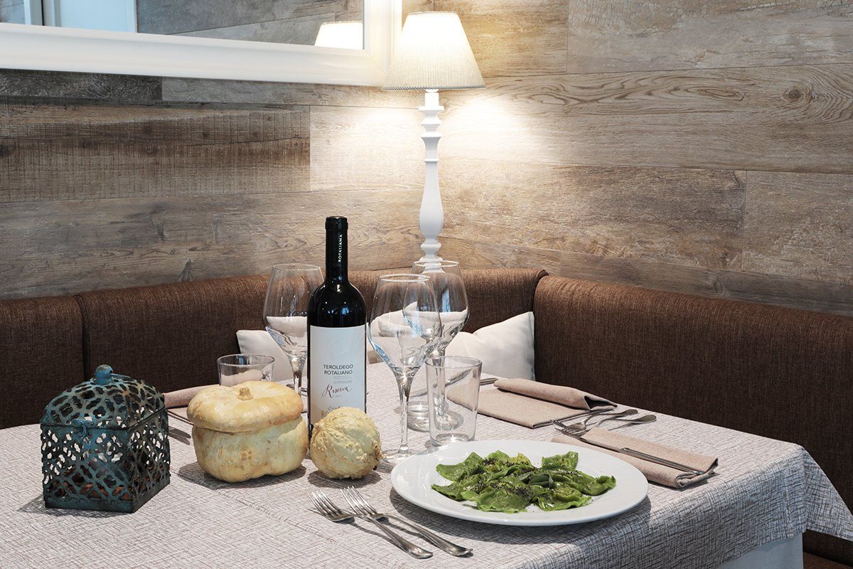 Il menù offre un'ampia scelta di pizze leggere e gustose. Il ristorante propone una cucina tipica trentina ma rivisitata in chiave personale dello chef, come il risotto ai mirtilli e porcini, specialità locale preparata a regola d'arte.